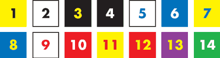 Exemplul 1 este o combinație de culori mai lizibila in timp ce exemplul 14 este cel mai puțin lizibil.