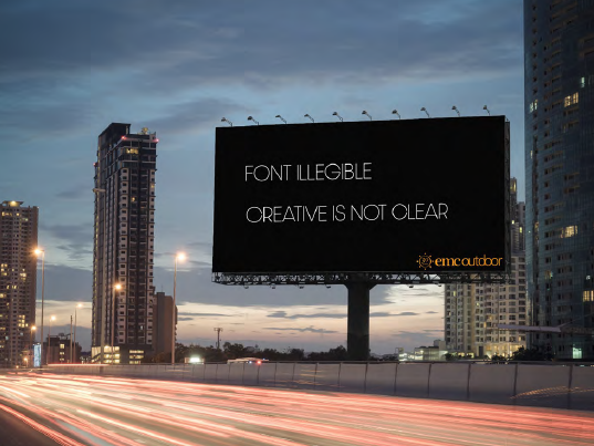 • Publicitatea OOH trebuie să fie minimalistă și să evite elementele inutile care pot distrage atenția. Scopul este să transmiteți un mesaj clar, fără ca audiența să depună efort pentru a-l înțelege.